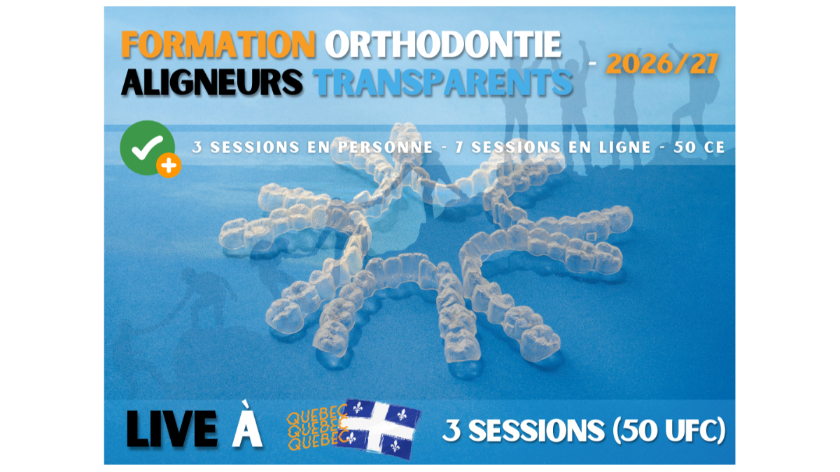 Un programme annuel de formation avancée en orthodontie avec aligneurs transparents, destiné aux dentistes, pour structurer le diagnostic, affiner la mécanique et acquérir les compétences essentielles à une pratique plus prédictible et maîtrisée. La participation d’un membre d’équipe non-dentiste (assistant(e) dentaire, hygiéniste, coordonnateur·rice ou gestionnaire) est incluse.